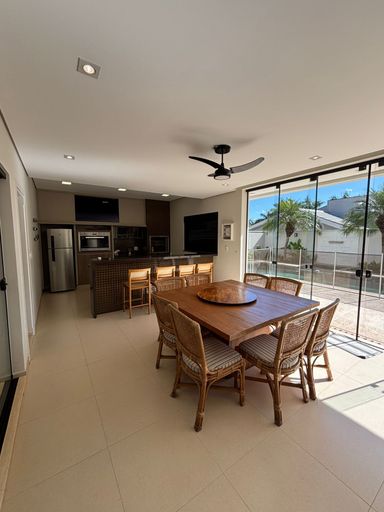 Uma Linda Casa projetada para unir elegância, conforto e praticidade. ✨ **Diferenciais do imóvel:** - 03 suítes, incluindo **suíte master com closet** - Sala home cinema / escritório - Sala de TV integrada - Lavabo interno e banheiro externo - Piscina com revestimento cerâmico e **deck em madeira peroba rosa** - **Porcelanato Portinari grande formato** em toda a casa (interno, externo e banheiros) - Banheiros 100% revestidos em porcelanato - Bancadas em Branco Paraná e Quartzo Branco Minerali - Escada em quartzo branco - **Aquecimento solar com boiler** - Torneiras monocomando Docol - Fachada com **ripado black acetinado Home Door** - Esquadrias linha gold Home Door - Revestimento de fachada em **travertino do Cairo importado do Egito** – Pietra Galeria de Pedras - Borda da piscina em travertino importado aerado - Garagem para 3 veículos - Calçada em pedra portuguesa - Paisagismo pronto para irrigação - Descarga externa para PET - Infraestrutura de rede de alta velocidade - Infraestrutura de ar-condicionado em toda a casa 🏡 Um projeto único, com acabamentos de alto padrão e pensado para oferecer sofisticação e bem-estar em cada detalhe. 📅 Agende sua visita e descubra o privilégio de viver em um dos condomínios mais nobres da região!