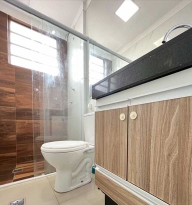 ✔️ Banheiro social com piso em porcelanato