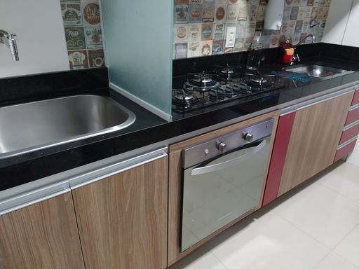 ✔️ Cozinha planejada com porcelanato, cooktop, coifa e forno embutido
