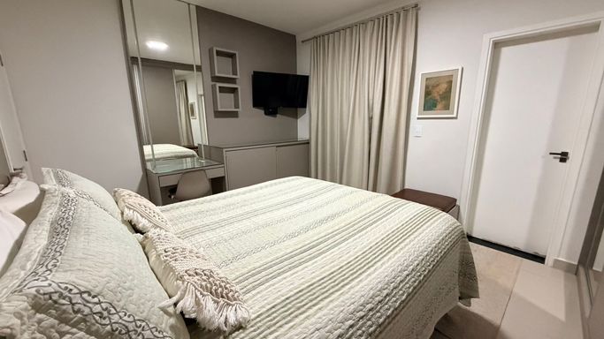 São 03 suítes, todas com ar condicionado