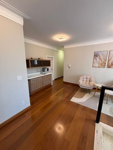 Os ambientes são enriquecidos pelo piso de madeira, que traz elegância e aconchego, além de uma planta inteligente que integra funcionalidade e bom gosto.