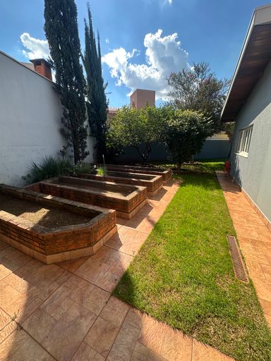 No andar superior, conta com 1 suíte, 2 quartos e um quartinho versátil. A área externa é um grande diferencial, com amplo quintal gramado e horta, ideal para valorização futura ou personalização.
